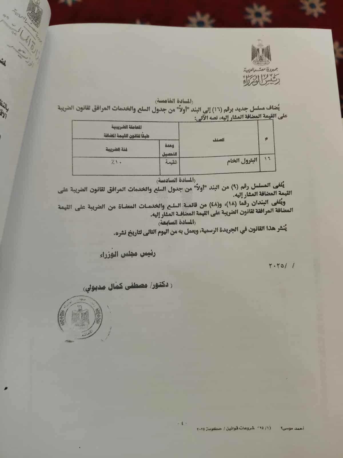 المادة الثانية نصت على استبدال المسلسل رقم (١٥) من البند “أولا”