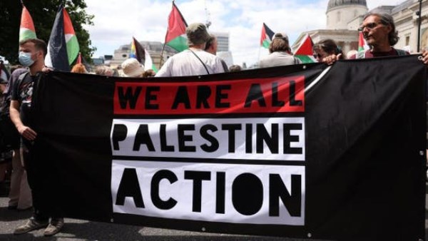 واقتحم نشطاء في الحركة قاعدة جوّية في جنوب انجلترا ورشّوا طلاء أحمر على طائرتين فيها، متسبّبين بأضرار بقيمة 7 ملايين جنيه استرليني (9,55 مليون دولار)، ولذلك تم اتخاذ قرار حظر “فلسطين أكشن” الذي دخل حيّز التنفيذ في وقت سابق من الشهر بالاستناد إلى قانون مكافحة الإرهاب في بريطانيا.
