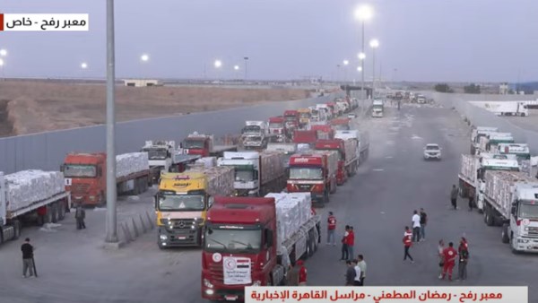 رصدت كاميرا  قناة القاهرة الإخبارية،تحرك الفوج الأول من قافلة المساعدات الإنسانية الخامسة من مصر إلى قطاع غزة.