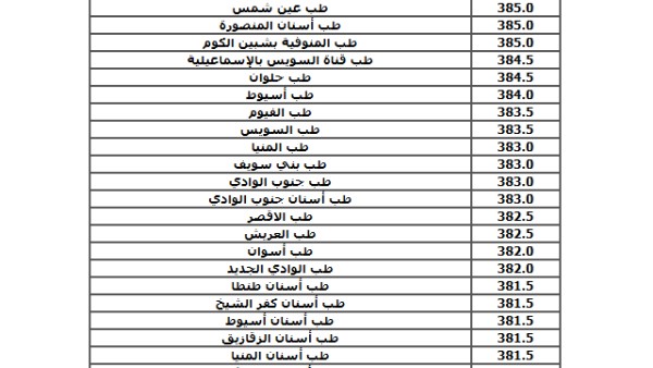 تنسيق المرحلة الأولي في تنسيق الجامعات للعام الماضي 2024