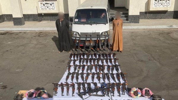 عقب تقنين الإجراءات تم ضبطهما بالمنطقة الجنوبية للبلاد ، وبحوزتهما 105 قطعة سلاح نارى (رشاش جرينوف – 100 بندقية آلية – 4 طبنجات – كمية كبيرة من الطلقات النارية).. هذا وتقدر القيمة المالية للمضبوطات بحوالى (22 مليون جنيه).