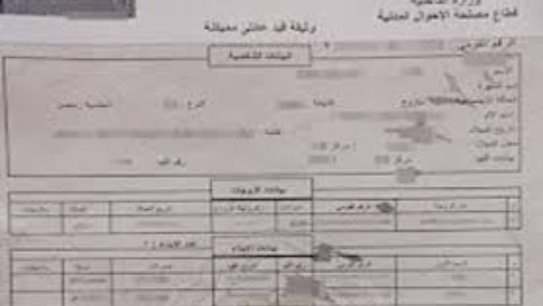 في حالة وفاة أحد أفراد القيد العائلي، يجب أن تكون شهادة الوفاة مطبوعة مميكنة سابقًا.