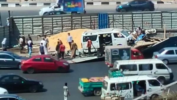 شهد الطريق الدائري في القطامية بالقاهرة اصطدام سيارة ميكروباص بمحطة الاتوبيس الترددي.