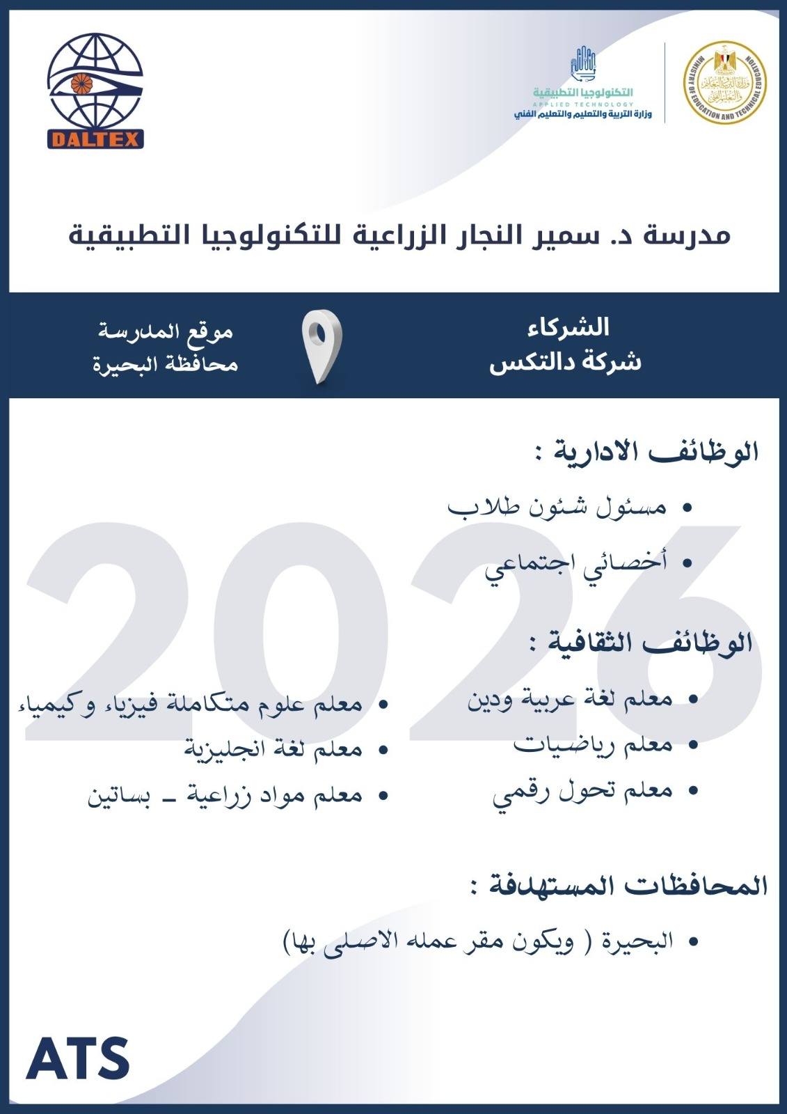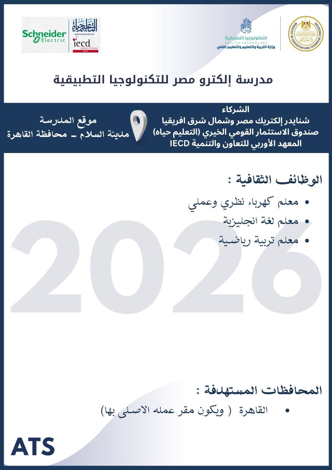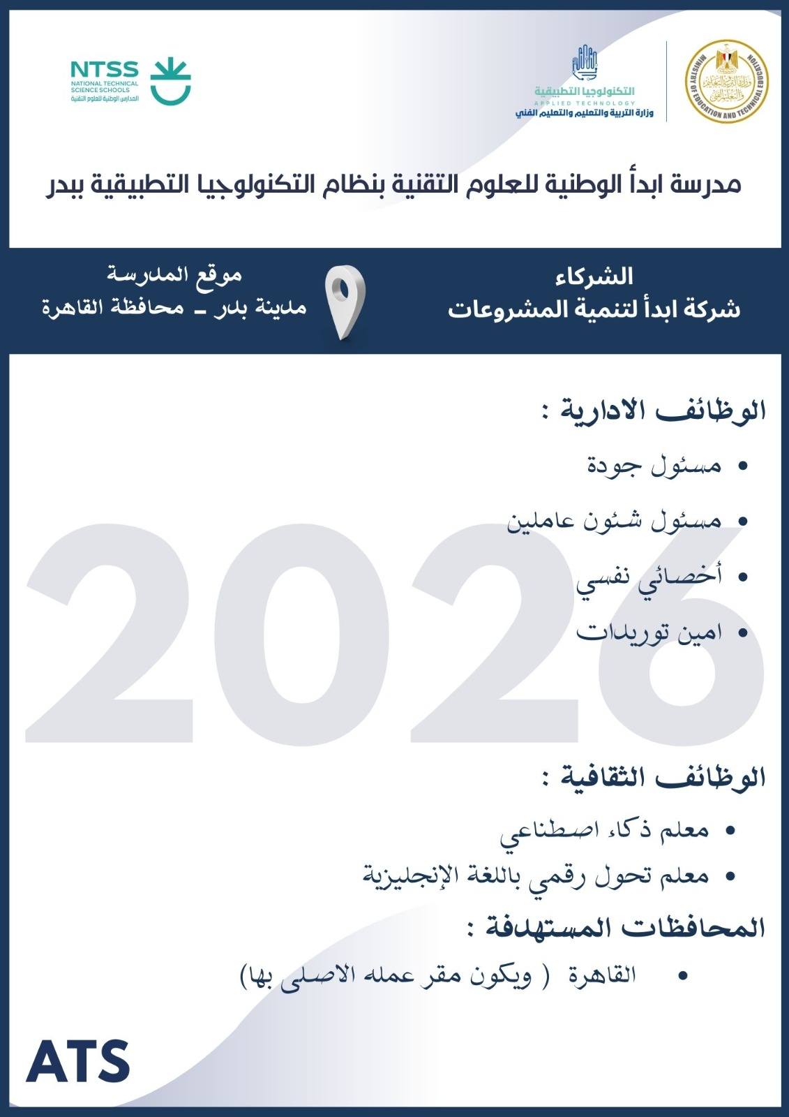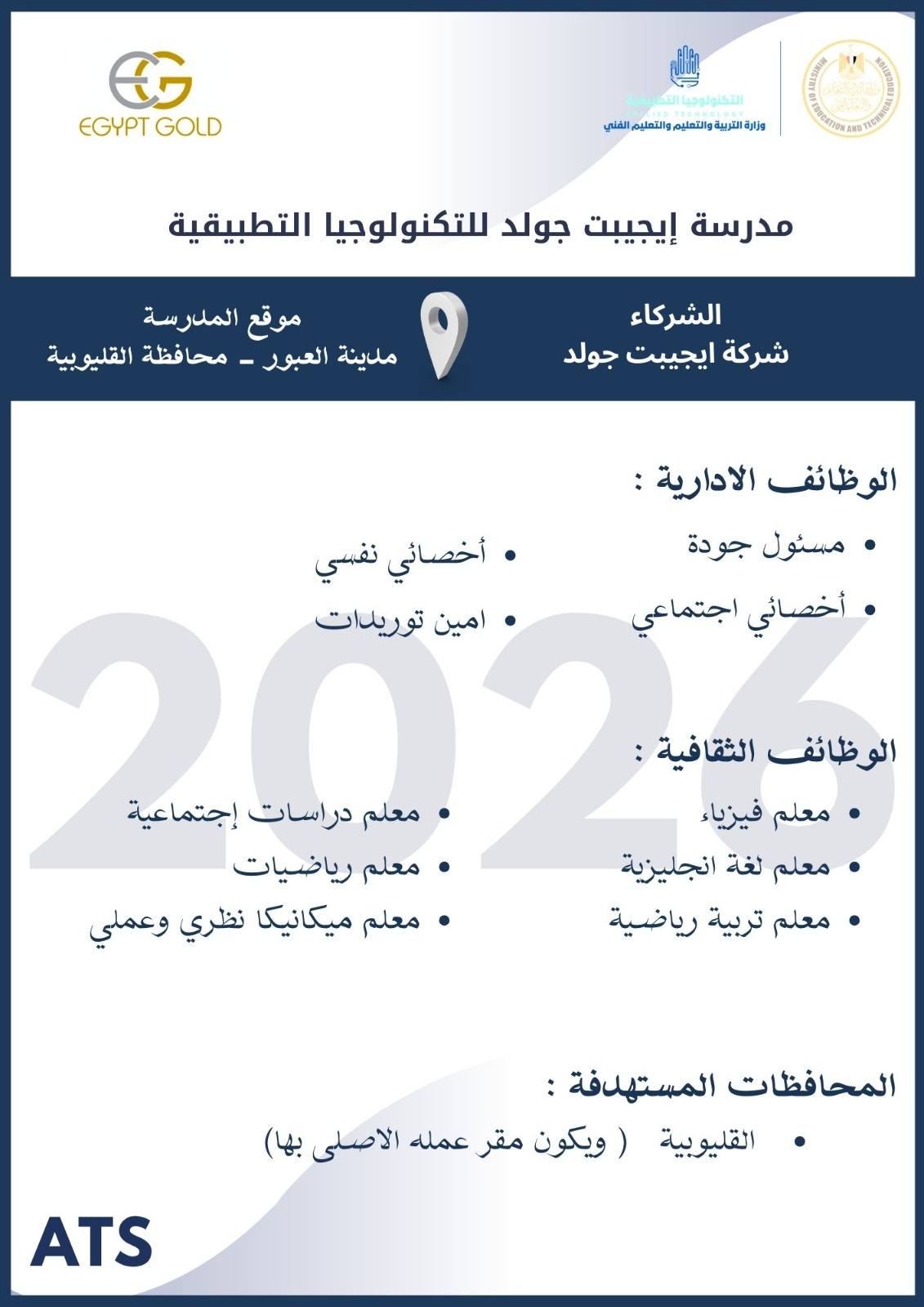 أعلنت وزارة التربية والتعليم والتعليم الفني ، أنه سيتم غلق باب التقديم في وظائف مدارس التكنولوجيا التطبيقية 2026 يوم الخميس 19 مارس 2026