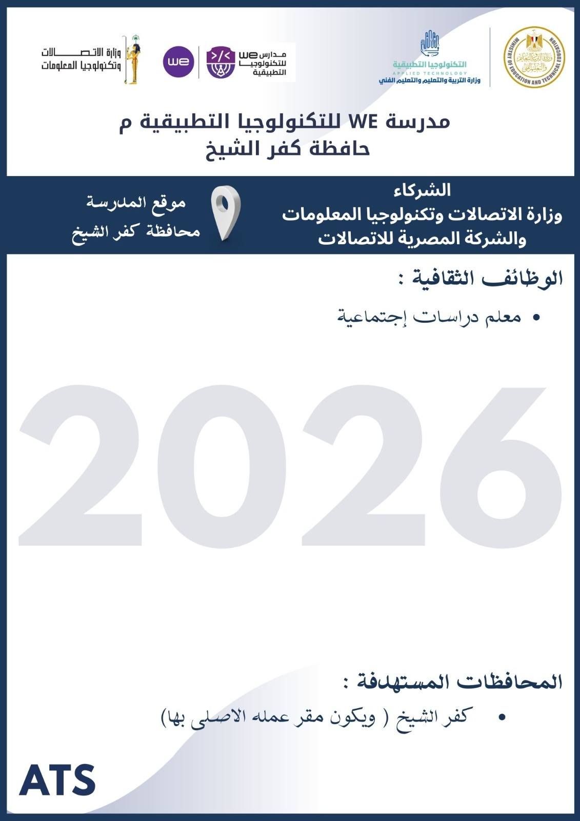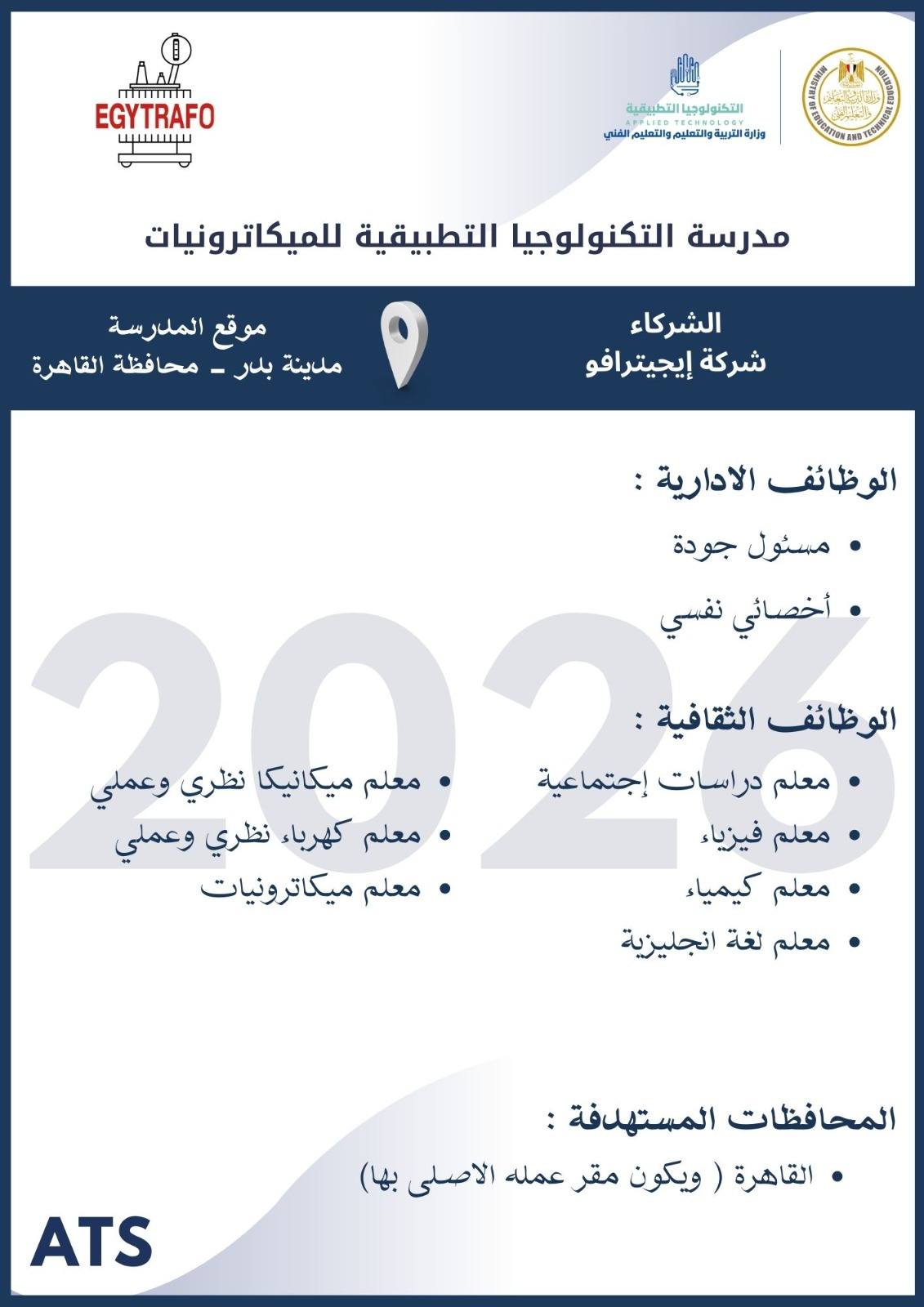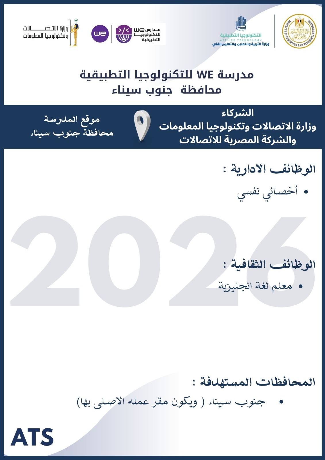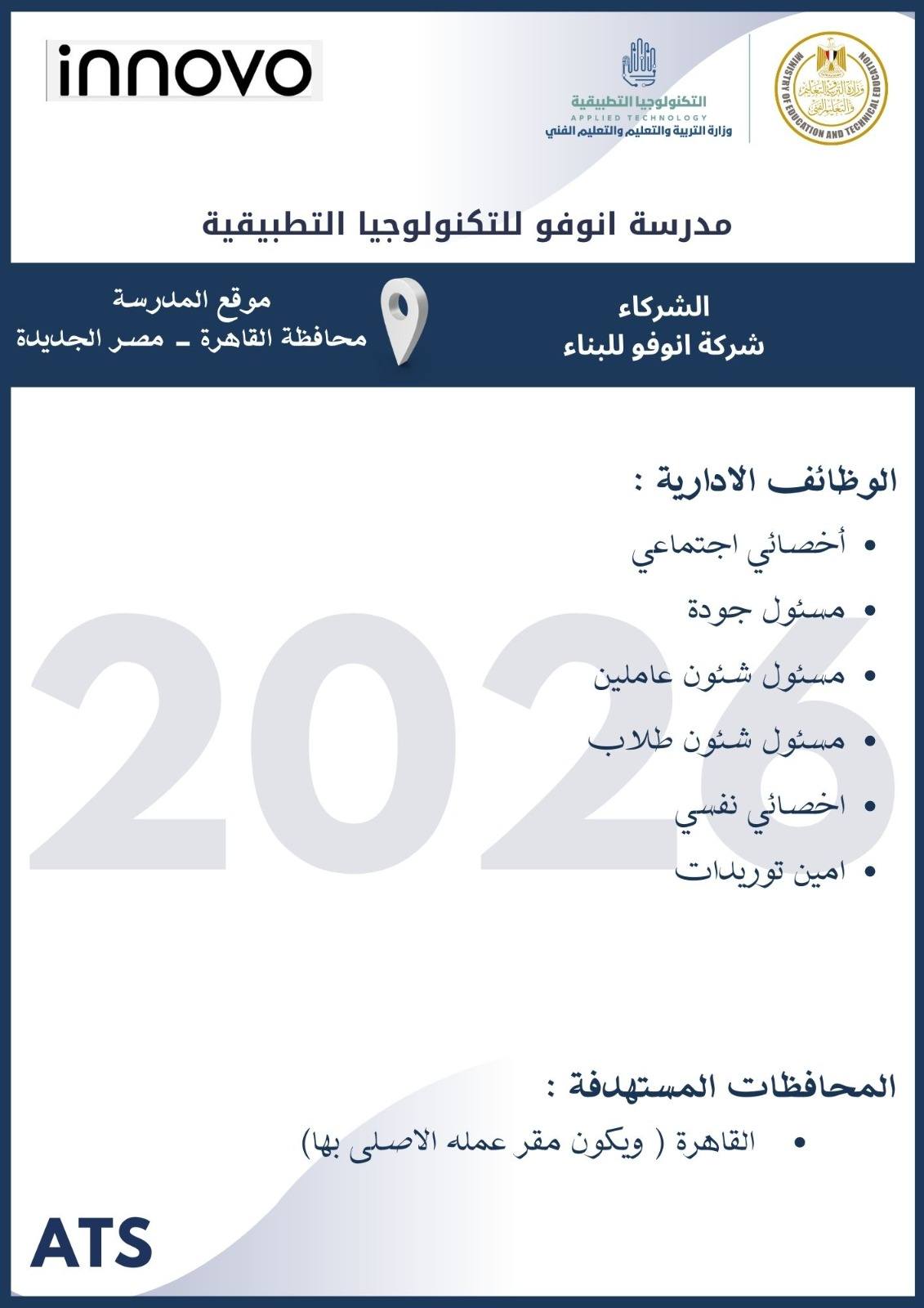 أعلنت وزارة التربية والتعليم والتعليم الفني ، أنه سيتم غلق باب التقديم في وظائف مدارس التكنولوجيا التطبيقية 2026 يوم الخميس 19 مارس 2026