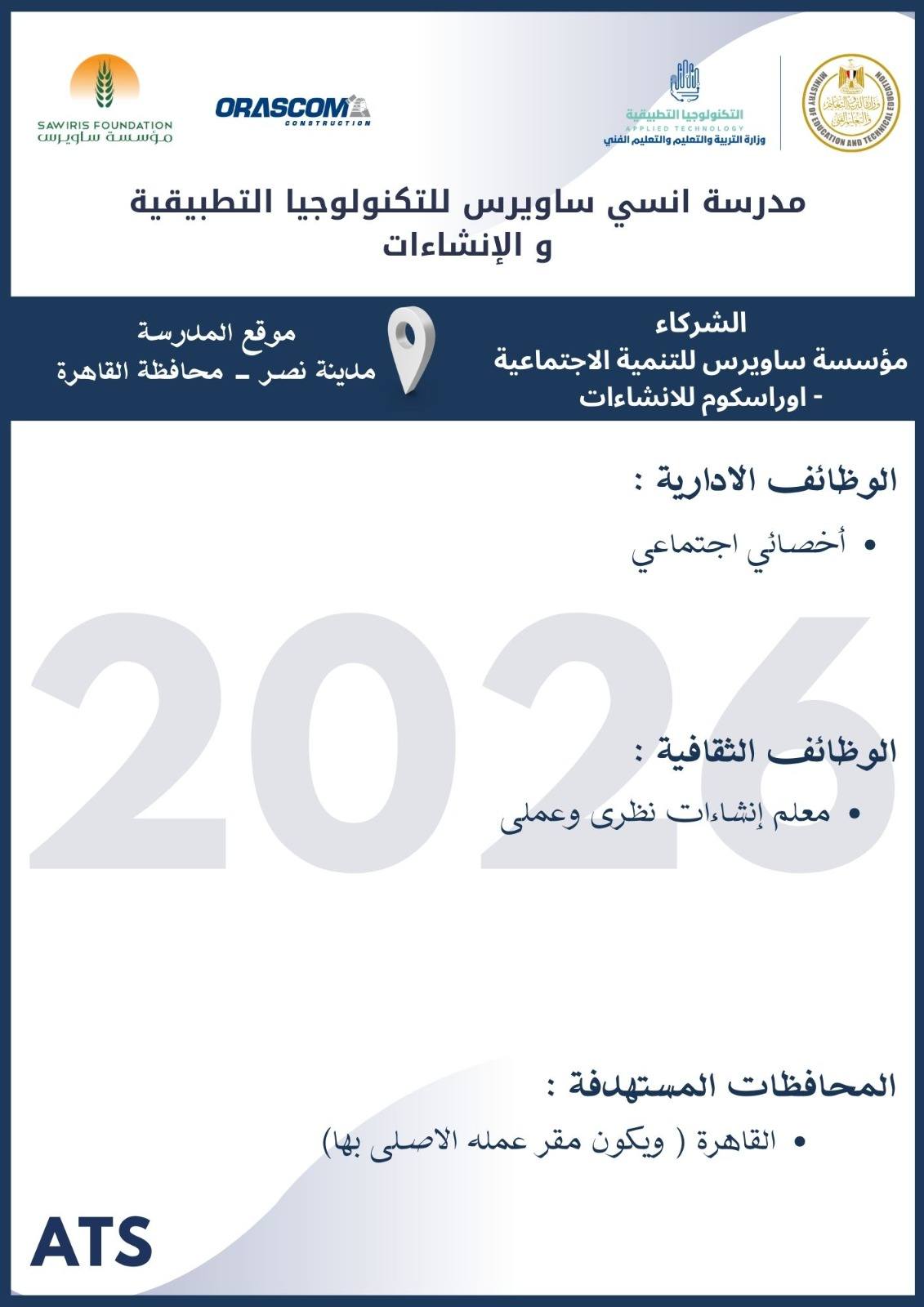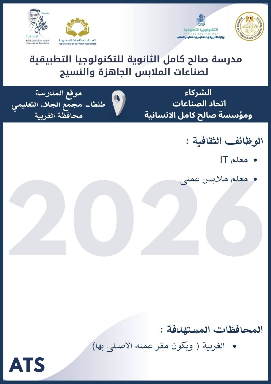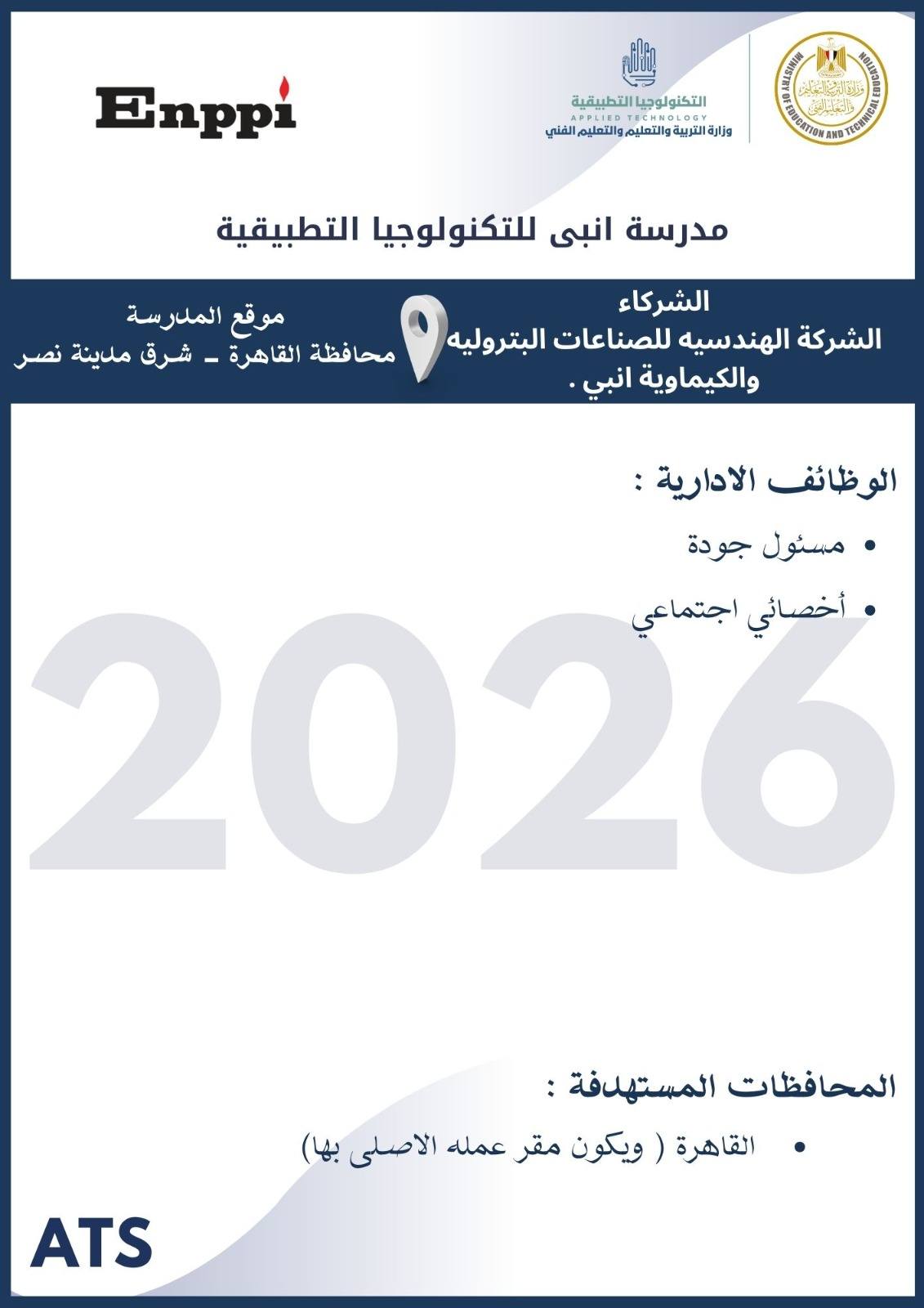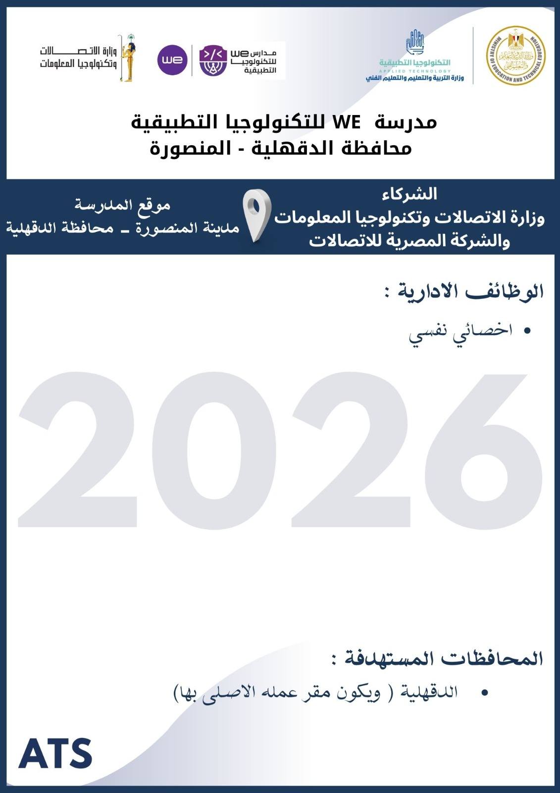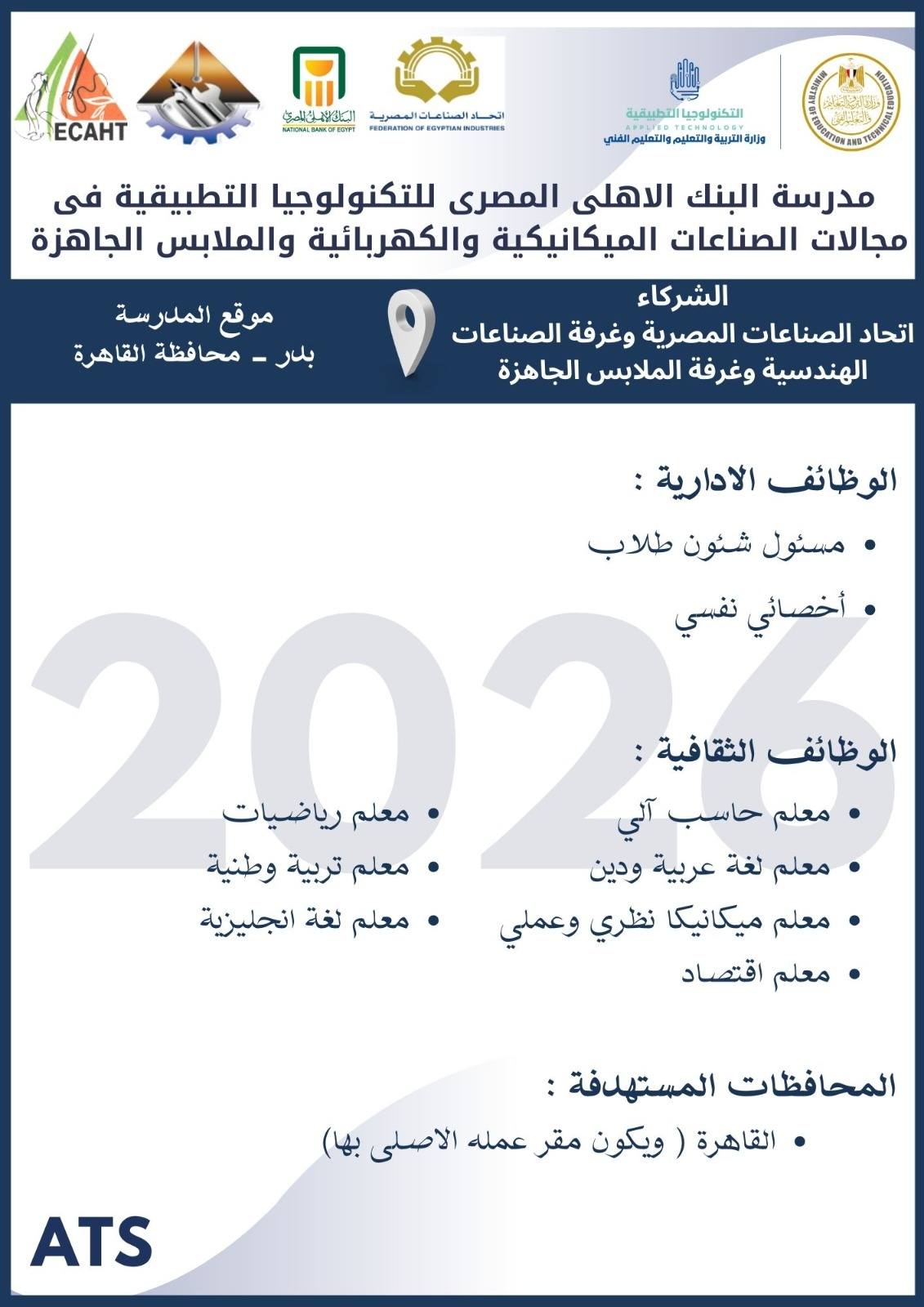 أعلنت وزارة التربية والتعليم والتعليم الفني ، أنه سيتم غلق باب التقديم في وظائف مدارس التكنولوجيا التطبيقية 2026 يوم الخميس 19 مارس 2026