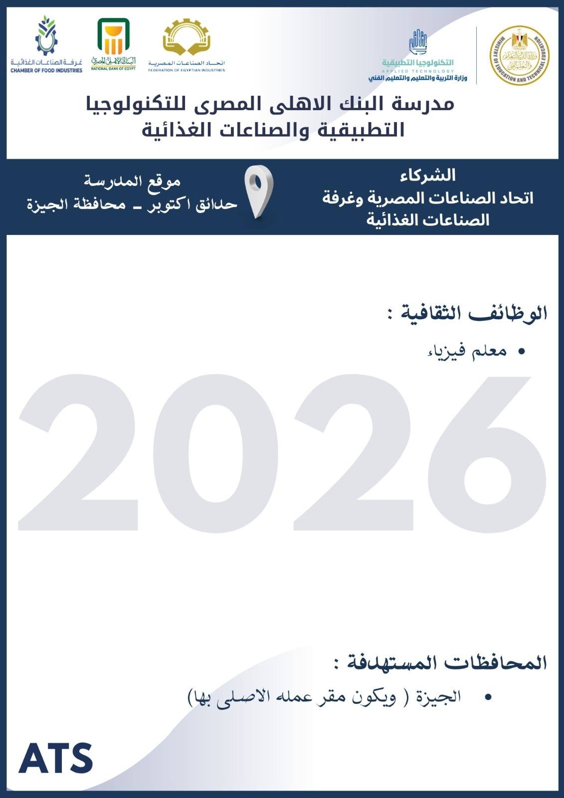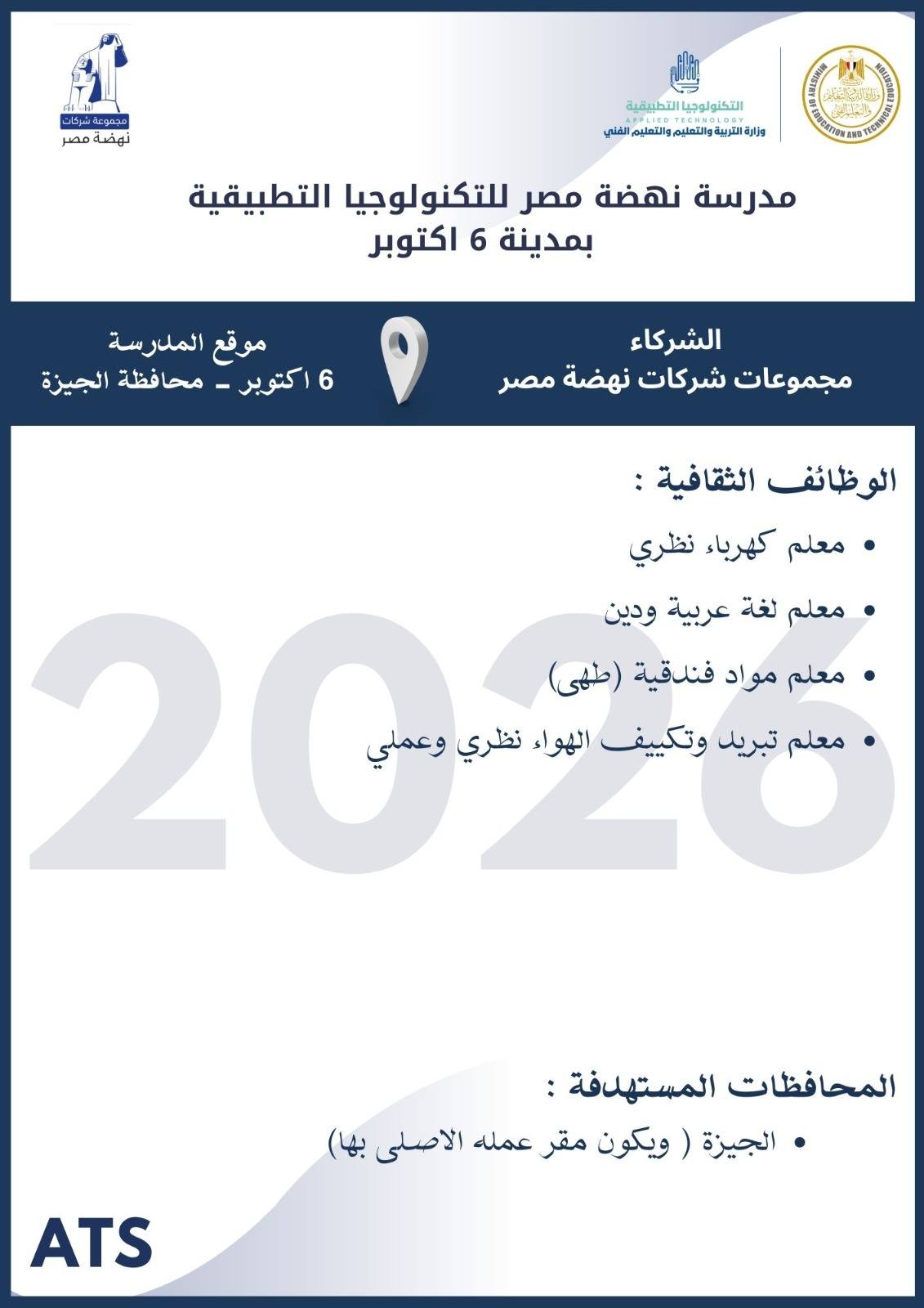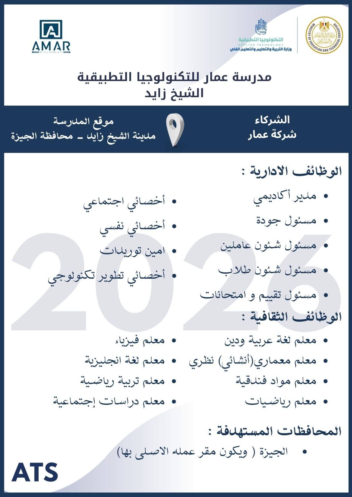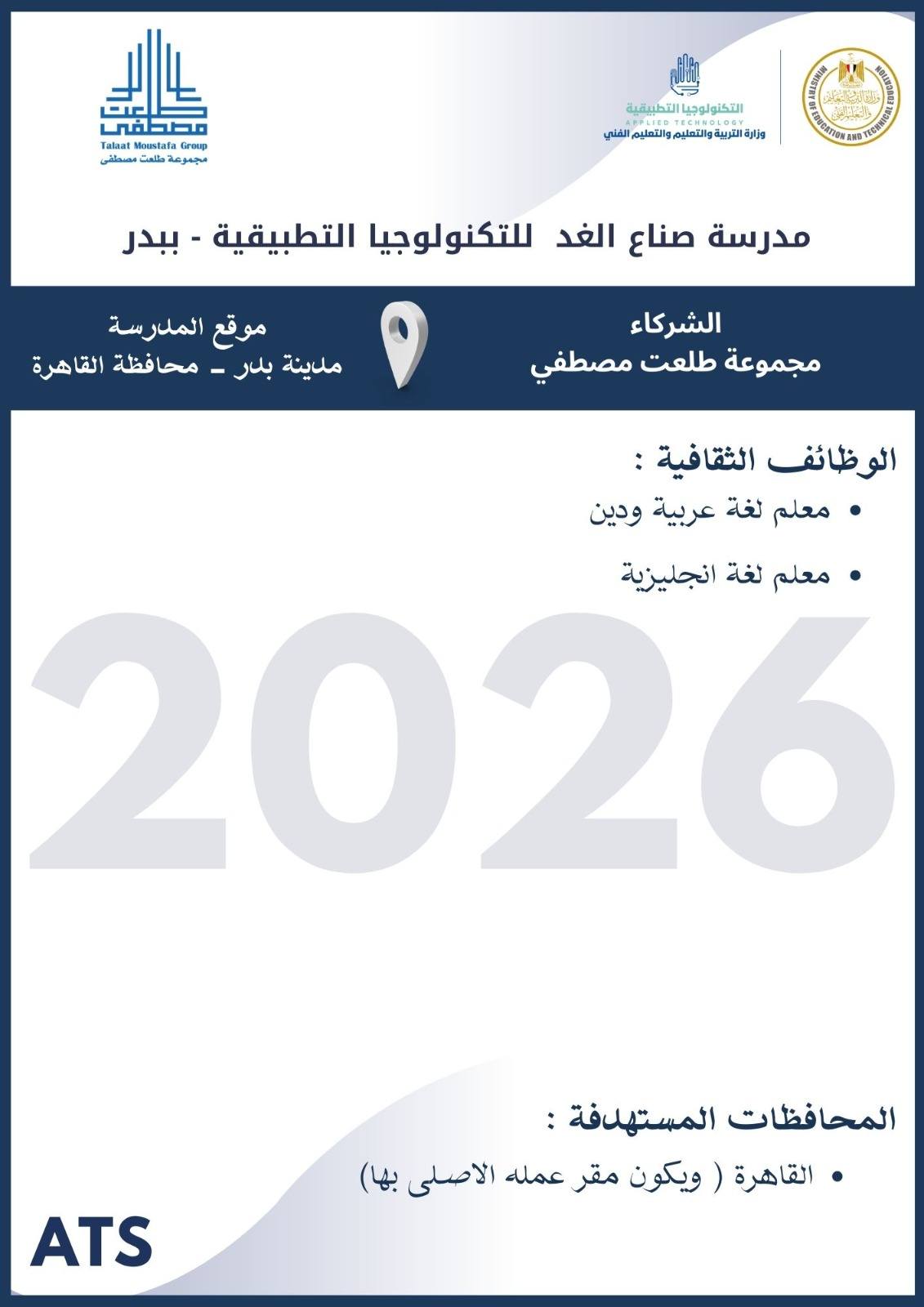 أعلنت وزارة التربية والتعليم والتعليم الفني ، أنه سيتم غلق باب التقديم في وظائف مدارس التكنولوجيا التطبيقية 2026 يوم الخميس 19 مارس 2026
