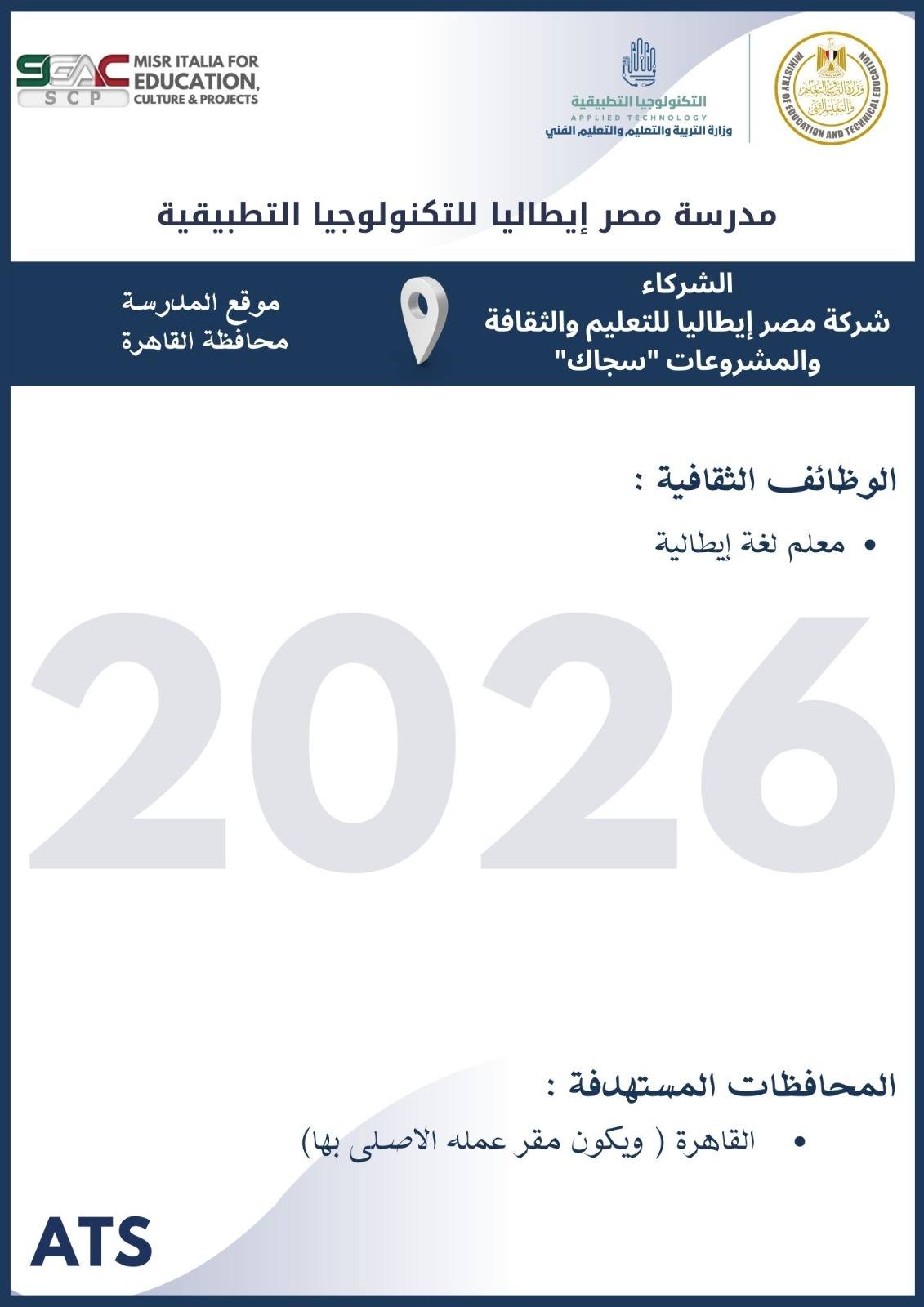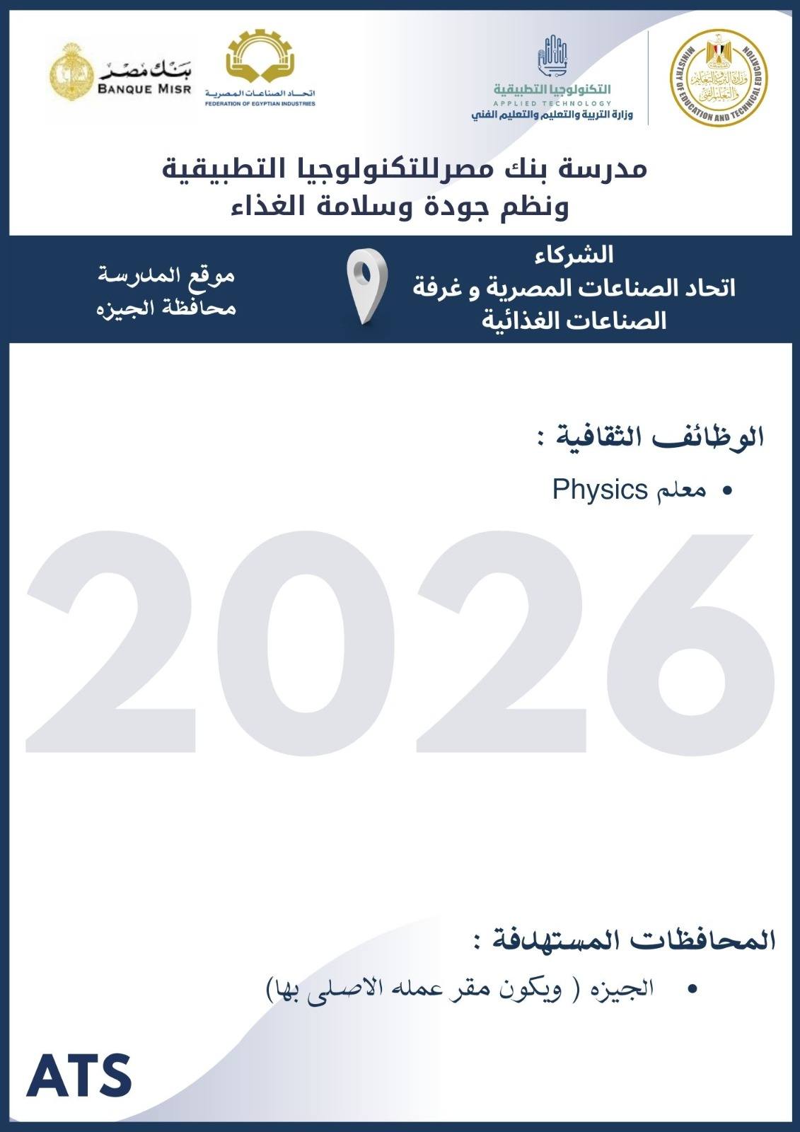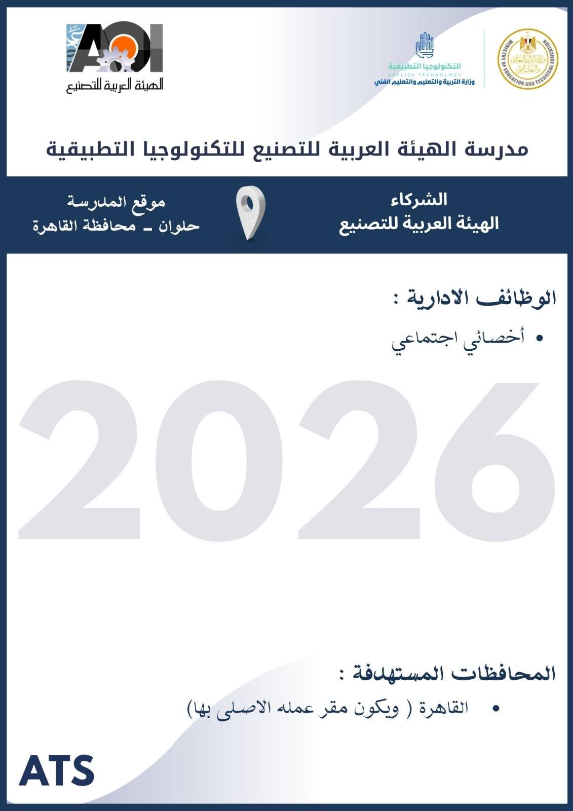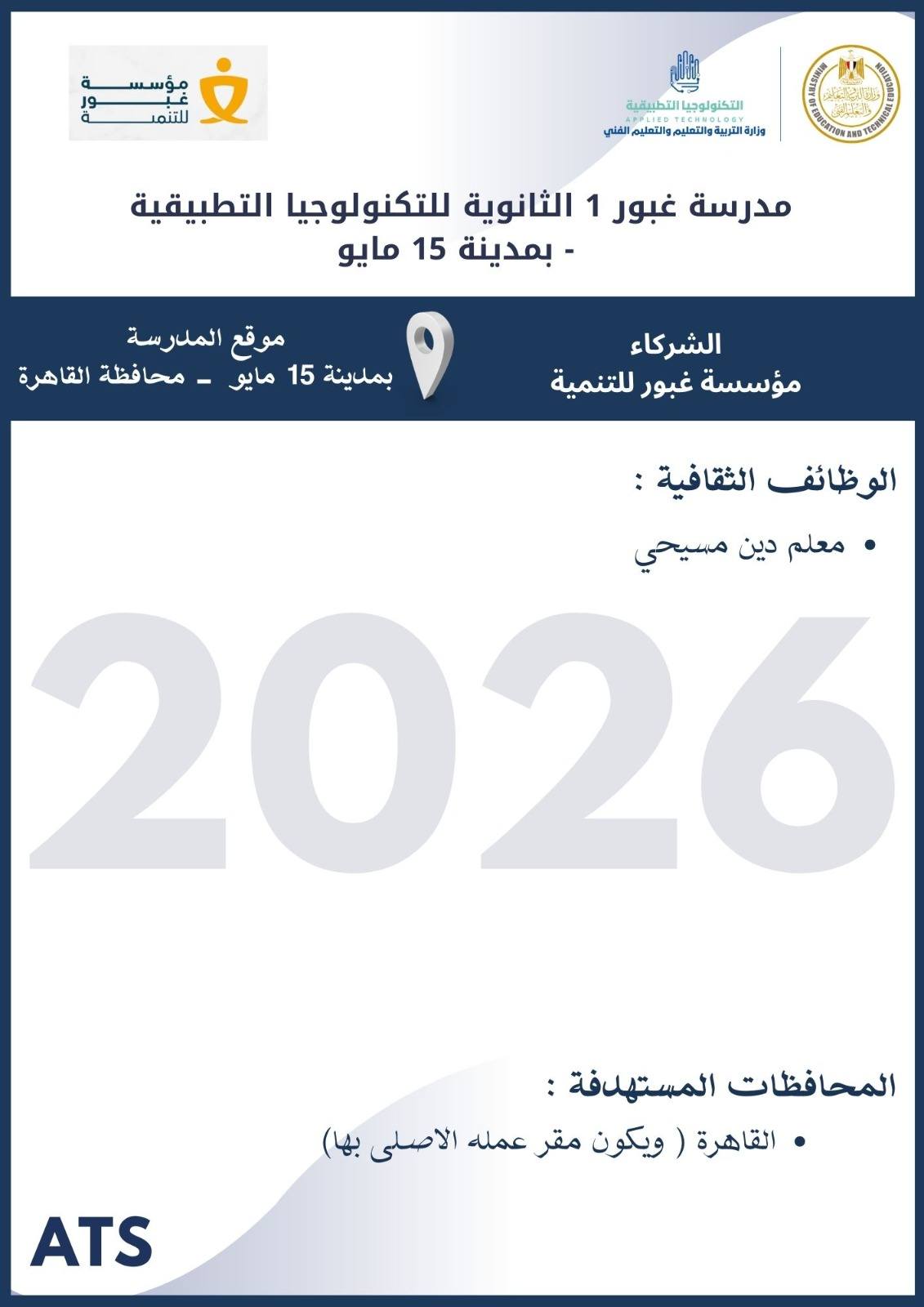 أعلنت وزارة التربية والتعليم والتعليم الفني ، أنه سيتم غلق باب التقديم في وظائف مدارس التكنولوجيا التطبيقية 2026 يوم الخميس 19 مارس 2026