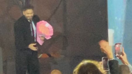 بعد شفائه.. بوكيهات ورد تنهال على تامر حسني في حفل قصر عابدين