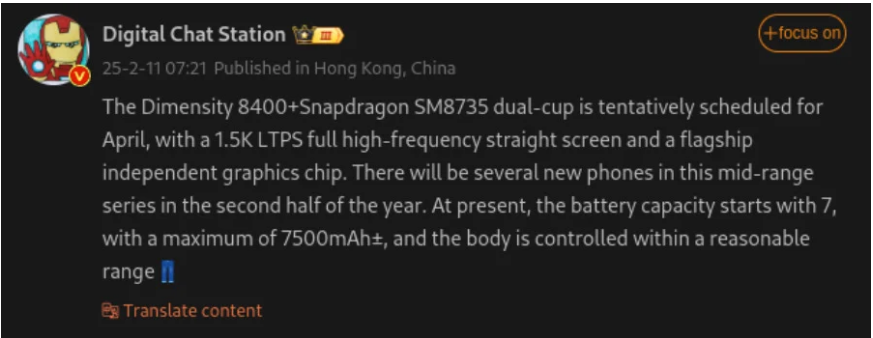 كشف منشور حديث على موقع Weibo من قِبل المُسرِّب الموثوق Digital Chat Station أنه قد يتضمن طرازًا يعمل بمعالج Snapdragon 8 من الجيل الخامس، والذي قد ينتهي به المطاف باسم iQOO Z11 Turbo Pro.