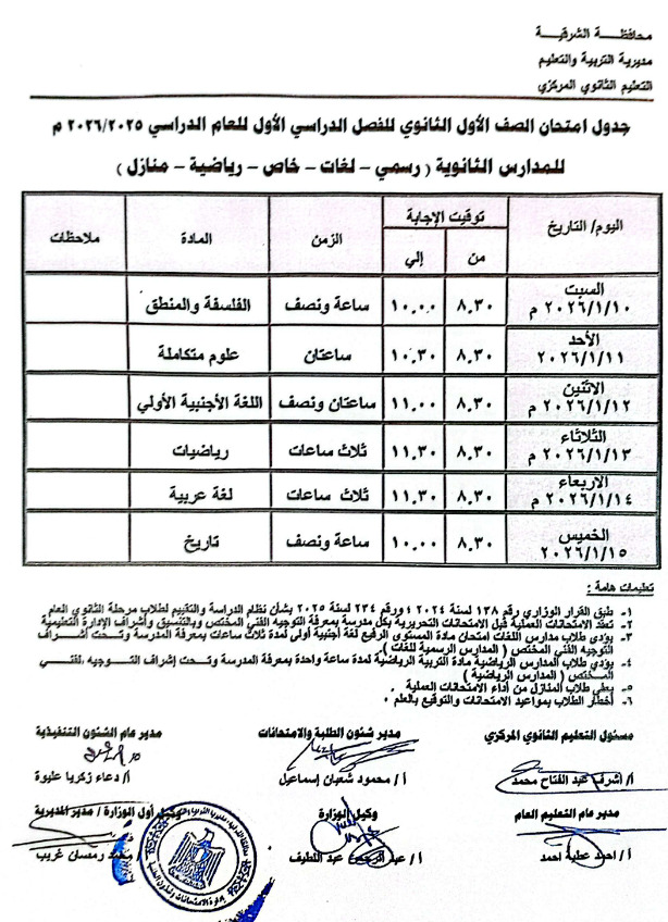 ومن المعتاد أن يتم إعلان جدول امتحانات الفصل الدراسي الاول 2026 جميع الصفوف في كل محافظة بمجرد اعتماد الجدول من المحافظ رسمياً