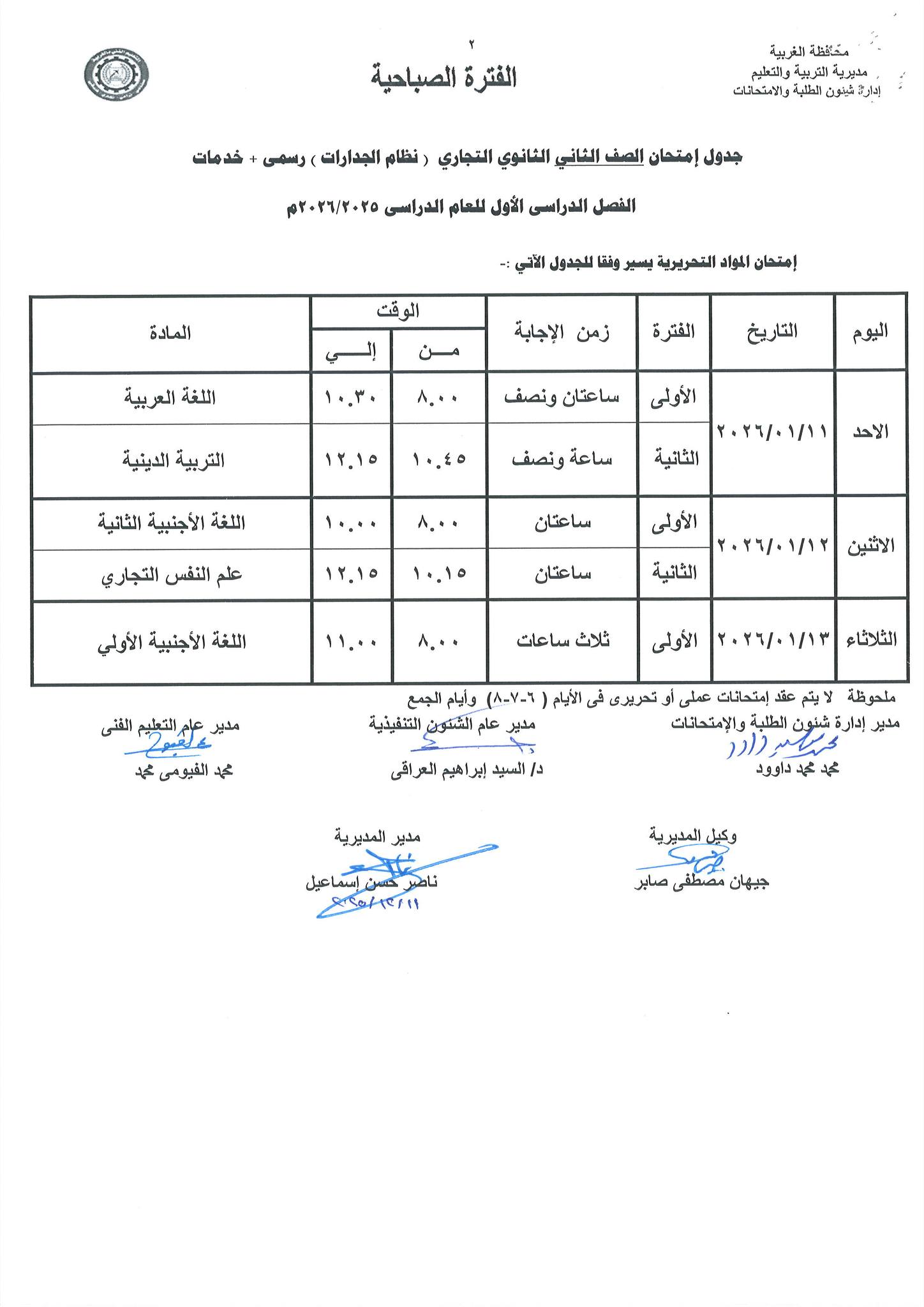 جدول امتحانات الفصل الدراسي الاول 2026 جميع المراحل