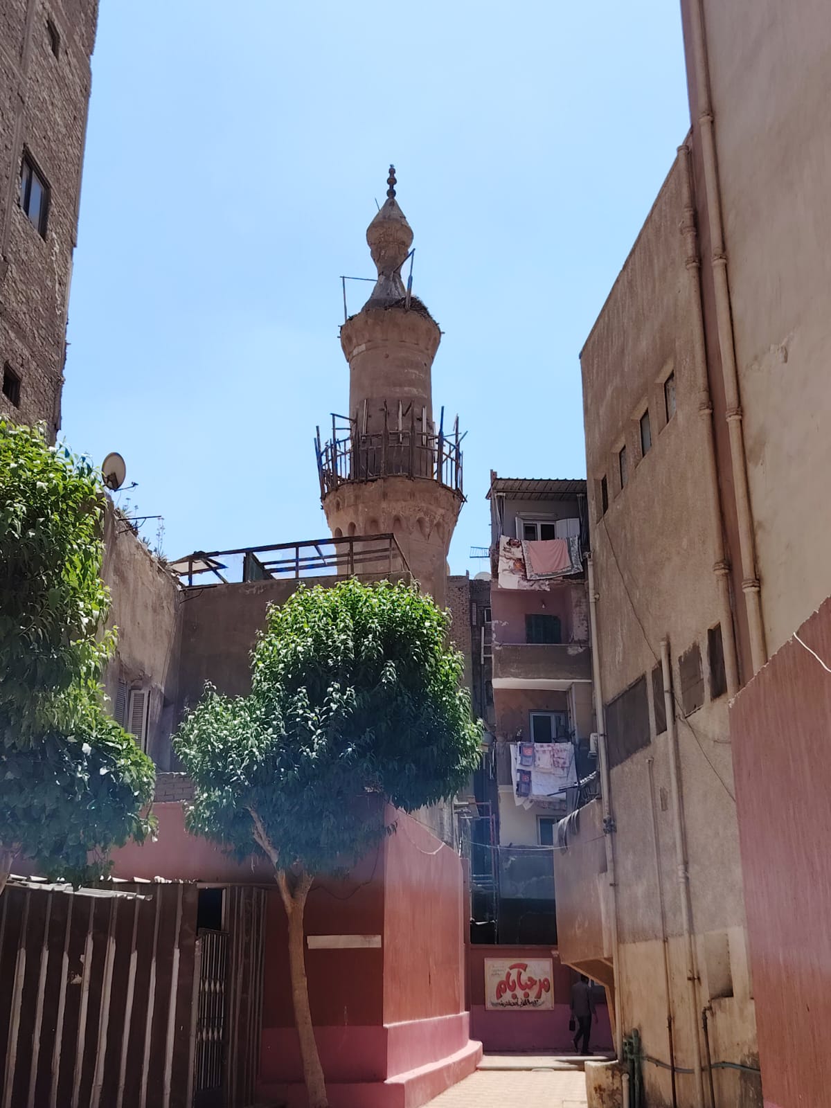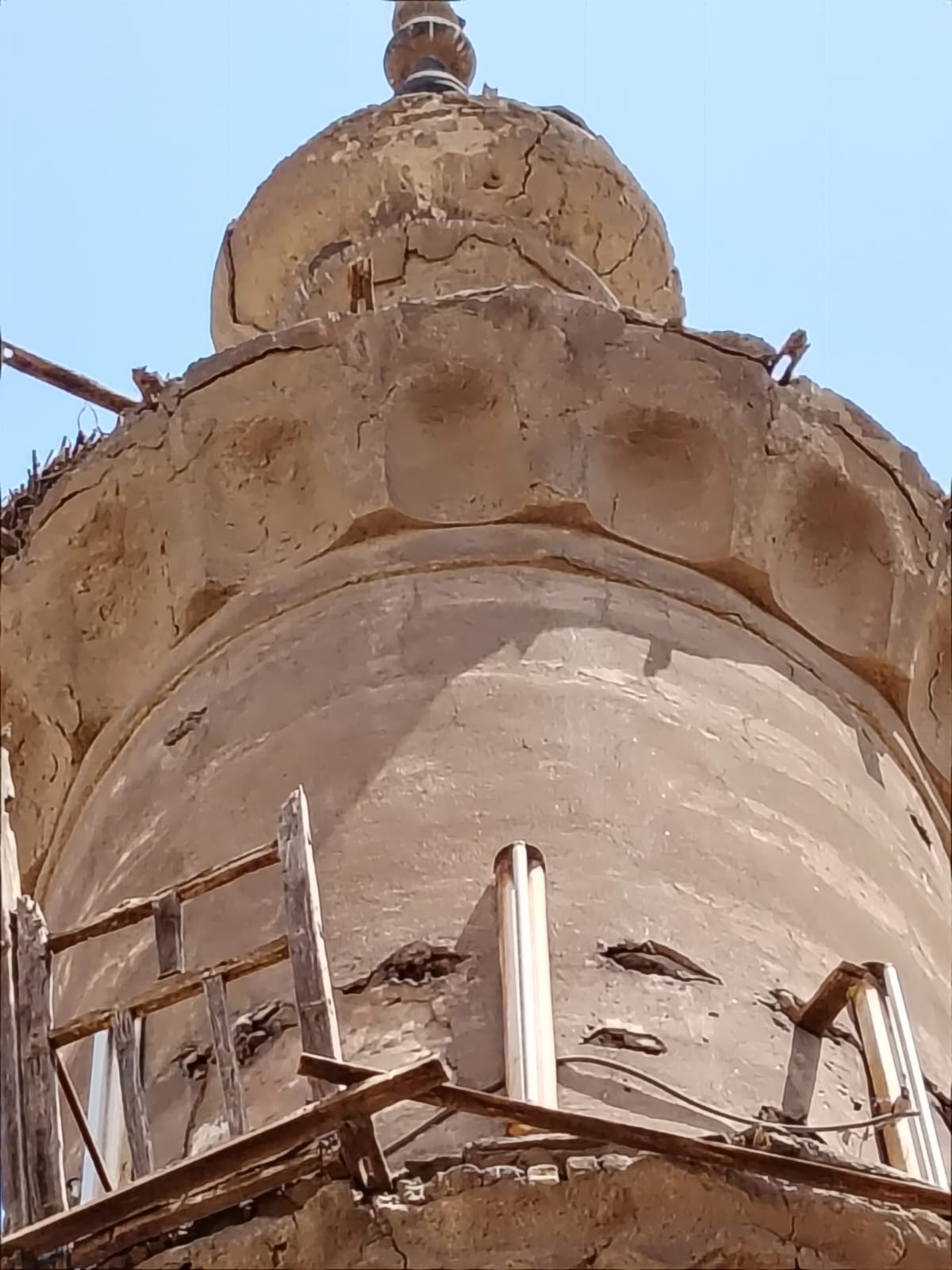 وخلال المعاينة، تبيّن وجود خطورة إنشائية جسيمة بالمئذنة، تمثلت في شروخ وانفصالات وانهيار جزئي بجوسق المئذنة، فضلاً عن وجود ميل واضح وانفصالات بكرسي المئذنة، بما يشكل خطرًا داهمًا على المواطنين والطلاب بالمناطق المحيطة.