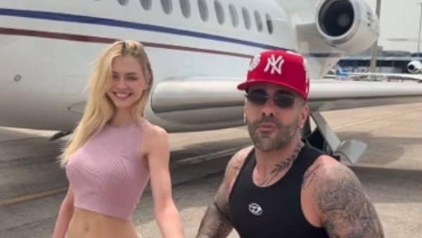 في مقطع فيديو نُشر على حسابه في إنستجرام يوم الأربعاء، يظهر الشاب البالغ من العمر 38 عامًا وهو يُقبّل عارضة الأزياء الإسبانية، التي تحمل حقيبة هيرميس بيركين بقيمة 25 ألف جنيه إسترليني، داخل الطائرة، في رحلة يُزعم أنها إلى إيبيزا لحضور افتتاح موسم 2026.