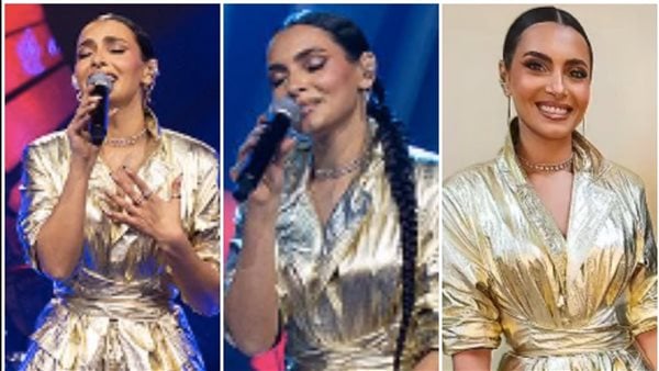 وتألقت كارمن سليمان، مرتديه عباءة انيقة بتصميم أنيق وجذاب باللون البيج الفاتح ليبرز جمالها