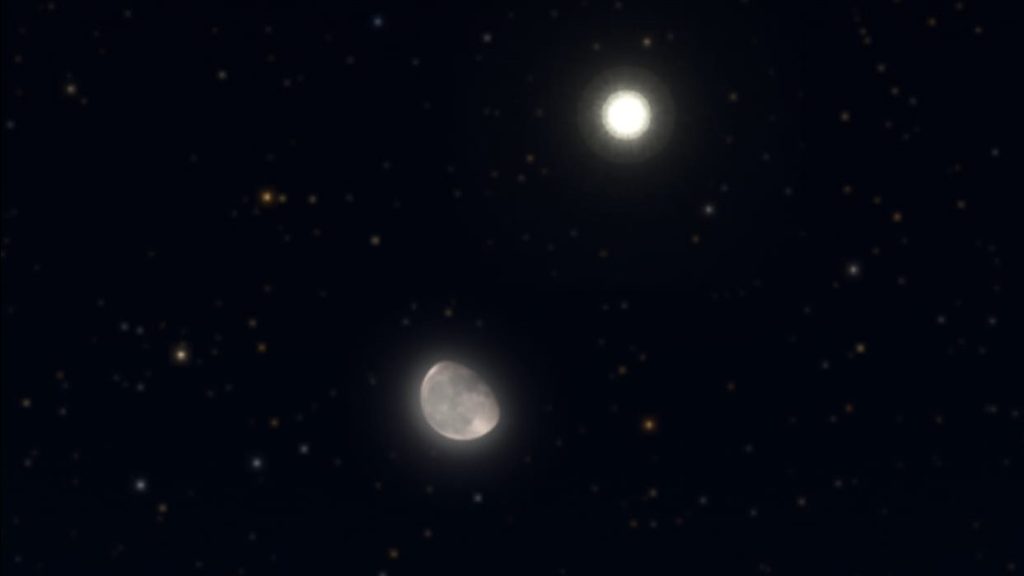 وأوضح  الدكتور أشرف تادرس أستاذ الفيزياء الفلكية ورئيس قسم الفلك الأسبق بالمعهد القومي للبحوث الفلكية والجيوفيزيقية، أن القمر سيتراءى في هذه الليلة متقارب مع كوكب المشتري عند غروب الشمس، حيث سيكون الاقتران واضح في السماء، ويمكن للعين المجردة متابعة المشهد بدون الحاجة لاستخدام التلسكوبات أو أدوات مكبرة.