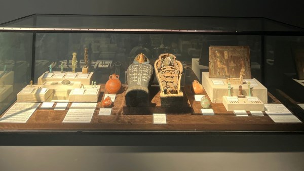 ويضم المعرض خمسة تماثيل من البرونز، من بينها تمثالان للمعبود أوزير يرجعان إلى العصر المتأخر، وتمثالان للمعبودة إيزيس من عصر الدولة الحديثة والعصر المتأخر، إلى جانب تمثال للمعبود بس المرتبط بالاحتفالات والبهجة في مصر القديمة.