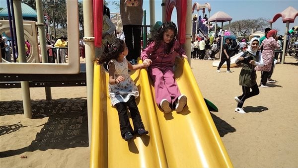 وتوافد عدد كبير من زوار الحديقة إلى منطقة الملاهي الموجودة بها ليستمتع الأطفال باللعب في الألعاب المختلفة.
