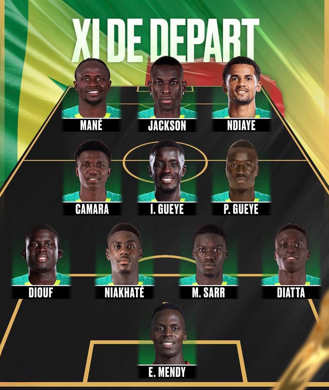 وجاء تشكيل منتخب السنغال معتمدًا على عناصر الخبرة والقوة البدنية، إلى جانب السرعة والمهارة في الخط الأمامي، في إطار سعي سيسيه للحفاظ على اللقب القاري ومواصلة الهيمنة السنغالية على كرة القدم الإفريقية.