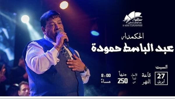 يحيي المطرب الشعبي عبد الباسط حمودة، حفلا في ساقية الصاوي، يوم 27 أبريل 2024.