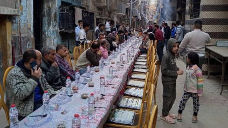 على غرار المطرية .. 1500 شخص على مائدة واحدة في كفر مناقر ببنها.. صور