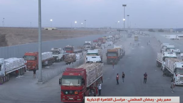 ورصدت كاميرا القاهرة الإخبارية ترصد تحرك قافلةالمساعدات الإنسانية الخامسة من مصر إلى قطاع غزة.