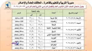 أعلنت مديرية التربية والتعليم محافظة القاهرة ، جدول امتحانات الصف الأول الثانوي 2024 ، و جدول امتحانات الصف الثاني الثانوي…