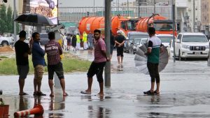 على شارع الهجرة بالشارقة. تصوير: محمد سجاد مع استمرار هطول الأمطار الغزيرة على أجزاء مختلفة من دولة الإمارات العربية المتحدة،…