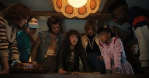 الموسم 5 من أشياء غريبة بدأ الفيلم بداية قوية مع الوفيات، وعودة الشخصية المفاجئة، وشخص جديد يطور قوى تخاطرية. تم عرض الجزء الأول من الموسم الأخير من العرض لأول مرة يوم الأربعاء 26 نوفمبر، حيث كان هوكينز في الحجر الصحي عن العالم الخارجي بعد Vecna (جيمي كامبل باور) كسر رسميًا الختم بين Upside Down والعالم الحقيقي. لم يكن من الواضح في البداية أين كان Vecna مختبئًا الآن منذ أحد عشر (ميلي بوبي براون) يبدو أنها فقدت الوصول إلى معظم صلاحياتها. بجانب هوبر (ديفيد هاربور) ، وضع أحد عشر والآخرون خططًا للبحث عن Vecna في المنطقة المقلوبة أثناء جلسات الحرق الروتينية…