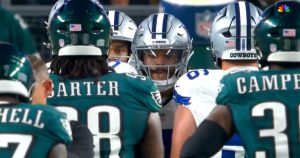 دالاس كاوبويز قورتربك داك بريسكوت ورد بعد المباراة الافتتاحية لموسم فريقه ضد فيلادلفيا إيجلز تحولت إلى مسابقة البصق. قبل أول مباراة من اللعبة بين المنافسين الطوابق يوم الخميس ، 4 سبتمبر ، معالجة دفاعية Eagles Star جالين كارتر تم طرده للبصق على بريسكوت. “أحد المسؤولين لاحظوا (كارتر) يبصق على خصم” ، الحكم شون سميث قال مراسل البلياردو بعد المباراة. “إنه خطأ غير مؤهل في اللعبة. إنه عمل غير كرة قدم.” ومع ذلك ، قبل انتهاء المباراة-انتصار 24-20 للنسور-تم توزيع الفيديو من بريسكوت ، 32 عامًا ، يزعم البصق في اتجاه كارتر أولاً. متعلق ب: رعاة البقر QB داك بريسكوت وخطيب…