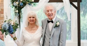 لم تتمكن إيلين هول من ارتداء فستان زفاف أبيض وحجاب عندما تزوجت من زوجها الأول عندما كانت في الثامنة عشرة من عمرها.بعد مرور سبعين عامًا، وبعد إعادة التواصل مع حبيب طفولتها والوقوع في حبه، أتيحت لها فرصة ثانية للحصول على حفل الزفاف التقليدي الذي طالما أرادته.”ظللت أقول عندما كنت في الثامنة والثمانين من عمري، ربما لا ينبغي لي أن أرتدي الحجاب. قالت بناتي: أمي، توقفي عن محاولة ألا تبدو كعروس. أنت عروس. “سنقوم بالأمر برمته” ، يقول هول لموقع TODAY.com.”عندما وصلت إليه، قال لي: “أنت تبدو جميلة جدًا”.”وهو رولاند باسارو، ويبلغ من العمر 88 عاماً أيضاً. وتزوج الزوجان في بالم…