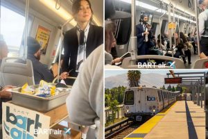 مقطع فيديو خفيفة مزحة تم صنعه حول قطار كاليفورنيا يحظر الطعام والشراب فيروسي. ارتفعت مجموعة من المخادعين على متن قطار في منطقة الخليج السريع (BART) في بدلات ودحرجت عربة وجبة خفيفة عبر السيارة ، وتخرج من المعجنات والمشروبات وحتى مناديل اليد. استحوذ المسافرون في القطار على لحظة صفيق على الفيديو ومقاطعه قد أصبح فيروسيًا على وسائل التواصل الاجتماعي. في مقطع فيديو Tiktok ، الذي حقق أكثر من 460،000 مشاهدة ، تدفع امرأة ترتدي بدلة عربة تقرأ “مضيفات الطيران في التدريب” ، وتوزيع المعجنات المصغرة المنفردة للركاب باستخدام ملقط. يفرض بارت سياسة صارمة لا طعام أو مشروب في جميع مناطقها المدفوعة…