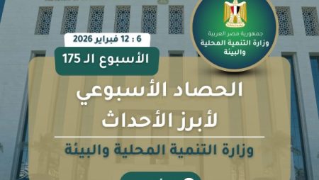 أصدر المركز الإعلامي لوزارة التنمية المحلية والبيئة “الانفوجراف الأسبوعي” في نسخته الـ 175 حول أبرز أنشطة وفعاليات الوزارة بقيادة الدكتورة منال عوض وزيرة التنمية المحلية والبيئة، حيث تضمن مجموعة من الفعاليات والاجتماعات ومتابعة المشروعات التنموية المهمة…