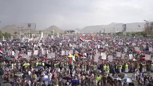 شهدت العاصمة اليمنية مظاهرة حاشدة في ميدان السبعين للمطالبة بوقف الحرب الإسرائيلية على غزة وفتح المعابر لإدخال المساعدات إلى سكان القطاع.وأكد المتظاهرون وقوف الشعب اليمني ومساندته لصمود الشعب الفلسطيني في قطاع غزة.تقرير: نبيل اليوسفي9/8/2025-|آخر تحديث: 01:26 (توقيت مكة)