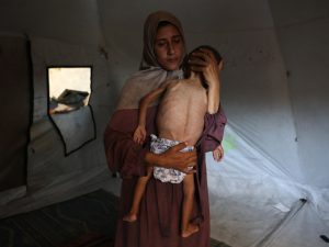 لم يتجاوز الطفل الغزي محمد المطوق العامين من عمره، لكنه يصارع الموت جوعا، إذ انخفض وزنه إلى 6 كيلوغرامات، مما دفع والدته لكي تسقيه الماء بدلا من الحليب. ومحمد ليس الطفل الوحيد في قطاع غزة، فهناك عشرات الآلاف يواجهون المصير نفسه، بعدما غابت ملامح الطفولة وتبدلت بوجوه شاحبة وأجساد هزيلة وعيون غائرة. 24/7/2025-|آخر تحديث: 23:43 (توقيت مكة)