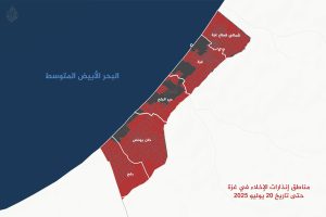 21/7/2025-|آخر تحديث: 18:33 (توقيت مكة)تحوّل نحو 82.4% من مساحة قطاع غزة الى مناطق خطرة، في حين يأوي حوالي 17.6% المتبقية ما يقرب من مليوني نازح فلسطيني، حسب خريطة بيانات أعدتها وكالة “سند” للتحقق الإخباري بشبكة الجزيرة. وتشير تطورات الخريطة الأخيرة إلى أن الإنذارات شملت منطقة محور “كيسوفيم”، الذي يفصل دير البلح عن خان يونس، وأصبحت المنطقة بين المدينتين تشكّل خطرا على النازحين، في حين لا يزال شارع الرشيد الساحلي هو الطريق الوحيد الواصل بين المحافظتين الوسطى والجنوبية، ولم يُصنَّف ضمن المناطق الخطرة حتى الآن. وتتزامن عملية تضييق المناطق الآمنة وحصر مئات الآلاف من السكان في مساحات محدودة، مع تفاقم كارثة…