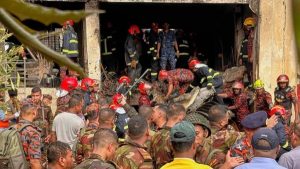 دكا – قال مسؤولون ووسائل الإعلام المحلية إن طائرة تدريب على سلاح الجو بنغلاديش تحطمت في حرم مدرسي في شمال دكا يوم الاثنين ، مما أسفر عن مقتل 19 شخصًا على الأقل ، بمن فيهم طيارها ، وأصيب أكثر من 100 آخرين.تحطمت الطائرة في حرم مدرسة Milestone School and College في حي ولاية أوتارا في دكا ، حيث كان الطلاب يختبئون ويحضرون دروسًا منتظمة.أكد مكتب العلاقات العامة التابعة لجيش بنغلاديش في بيان موجز أن طائرة F-7 BGI التي تم إسقاطها تنتمي إلى سلاح الجو.أظهرت لقطات التلفزيون النار والدخان يتصاعدون من موقع التحطم.أصيب الآباء والأقارب بالذعر في مكان الحادث كرجال إنقاذ…