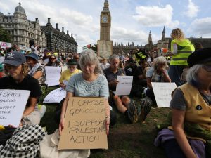Published On 6/9/20256/9/2025|آخر تحديث: 19:46 (توقيت مكة)آخر تحديث: 19:46 (توقيت مكة)شارك أكثر من 1200 شخص بمظاهرة كبرى في لندن احتجاجا على حظر حركة “العمل من أجل فلسطين” (فلسطين أكشن) التي حظرتها الحكومة وصنفتها “منظمة إرهابية”، في واحدة من أكبر تحركات العصيان المدني الجماعي في تاريخ بريطانيا.ومنذ الساعة الواحدة بعد ظهر اليوم السبت، تجمع المتظاهرون في ساحة البرلمان وكتبوا على لافتات احتجاجية “أنا أعارض الإبادة الجماعية، أنا أدعم منظمة فلسطين أكشن”.عناصر من الشرطة لدى اعتقال أحد المتظاهرين (الفرنسية)وكان من بين المشاركين بالاحتجاجات القس سو بارفيت (83 عاما)، وقد اعتقلت في أول احتجاج ضد الحظر في الخامس من يوليو/تموز الماضي، وهو اليوم…