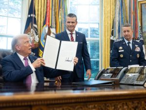 Published On 6/9/20256/9/2025|آخر تحديث: 01:24 (توقيت مكة)آخر تحديث: 01:24 (توقيت مكة)وقّع الرئيس الأميركي دونالد ترامب الجمعة أمرا تنفيذيا ينص على تغيير اسم وزارة الدفاع إلى “وزارة الحرب”، لتعود بذلك إلى الاسم الذي كانت تحمله حتى ما بعد الحرب العالمية الثانية، حينما سعى المسؤولون إلى التأكيد على دور البنتاغون في منع نشوب النزاعات.وتمثل هذه الخطوة أحدث جهود ترامب لإعادة صياغة صورة الجيش الأميركي، التي شملت قراره برئاسة عرض عسكري استثنائي وسط مدينة واشنطن العاصمة، وإعادة الأسماء الأصلية للقواعد العسكرية التي جرى تغييرها بعد احتجاجات العدالة العرقية عام 2020.وفي مؤتمر صحفي عقده بالبيت الأبيض الجمعة، أوضح ترامب أن الإدارة الأميركية اتخذت خطوة…