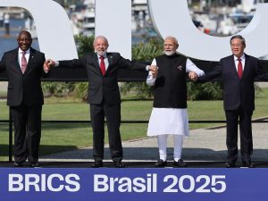 6/7/2025-|آخر تحديث: 20:17 (توقيت مكة)يلتقي قادة دول مجموعة بريكس اليوم الأحد في ريو دي جانيرو البرازيلية رغم غياب الرئيسين الصيني شي جين بينغ والروسي فلاديمير بوتين سعيا لتشكيل جبهة موحدة ضد سياسة دونالد ترامب الحمائية. ويعقد قادة مجموعة الدول الناشئة الكبرى الـ11 -ومن بينها البرازيل والصين والهند وروسيا وجنوب أفريقيا- اجتماعهم السنوي الذي يستمر يومين، وسط إجراءات أمنية مشددة في خليج غوانابارا بمدينة ريو دي جانيرو، في ظل الحرب التجارية التي أشعل فتيلها ترامب على وقع رسوم جمركية مشددة. وحسب مسودة البيان الختامي التي نقلتها وكالة الصحافة الفرنسية، يعتزم المجتمعون الإعراب عن “مخاوفهم البالغة حيال تزايد التدابير الجمركية وغير الجمركية…