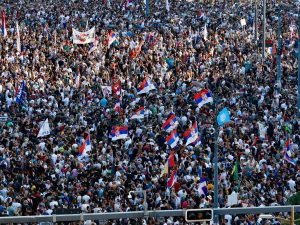 28/6/2025-|آخر تحديث: 23:11 (توقيت مكة)تظاهر عشرات الآلاف من الطلاب والمحتجين المناهضين للفساد في صربيا اليوم السبت، للمطالبة بإجراء انتخابات مبكرة وإنهاء حكم الرئيس ألكسندر فوتشيتش المستمر منذ 12 عاما. ونشرت الشرطة العشرات من قوات مكافحة الشغب في محيط المباني الحكومية والبرلمان وحديقة بيونيرسكي في بلغراد، حيث تجمعت حشود من أنصار فوتشيتش في احتجاج مضاد. ومنذ نوفمبر/تشرين الثاني الماضي تشهد صربيا احتجاجات ضد الفساد على خلفية انهيار سقف محطة للقطارات في مدينة نوفي ساد أسفر عن مصرع 16 شخصا، في مأساة نسبت إلى الفساد المتجذر. وطوال أكثر من 6 أشهر شهدت جامعات صربيا اعتصامات، ونظّم طلاب مظاهرات حاشدة في مختلف أنحاء البلاد…