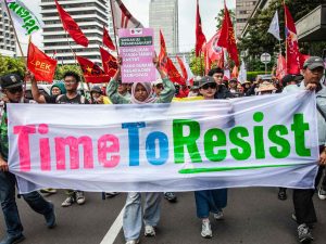 Published On 4/9/20254/9/2025|آخر تحديث: 15:11 (توقيت مكة)آخر تحديث: 15:11 (توقيت مكة)تظاهر مئات الطلاب والعمال اليوم الخميس في العاصمة الإندونيسية جاكرتا لمطالبة الحكومة بإصلاحات سياسية واقتصادية في البلاد، وتنديدا بتدني الأجور مقابل زيادة مخصصات المسؤولين.وقالت مجموعة طلابية إنها تعتزم تنظيم احتجاج أمام مبنى البرلمان في العاصمة جاكرتا اليوم الخميس في ظل عدم التوافق بشأن مقترح لعقد اجتماع مع الحكومة حول المظاهرات الضخمة التي أسفرت عن مقتل 10 أشخاص.ويطالب المحتجون بمراجعة القوانين المتعلقة بالشركات والتوظيف وتعزيز الرقابة على المؤسسات الحكومية وصناديق الاستثمار السيادية.وأفاد تحالف لتجمعات طلابية قبيل احتجاجات اليوم في بيان بأن “القلق الحقيقي لدى الشارع ليس من الاحتجاجات، وإنما من الفساد وتسييس…