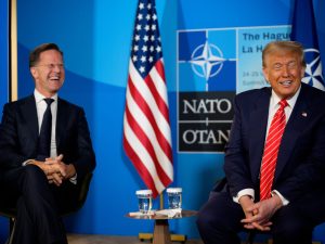 25/6/2025-|آخر تحديث: 21:39 (توقيت مكة)شبّه الأمين العام لحلف شمال الأطلسي (ناتو) مارك روته، اليوم الأربعاء، الرئيس الأميركي دونالد ترامب بأنه “ولي أمر” تدخل في شجار بساحة مدرسة بعد أن استخدم ترامب العبارة ذاتها للإشارة للحرب الأخيرة بين إسرائيل وإيران. وشبّه ترامب -في تصريحات للصحافة خلال قمة حلف الناتو في لاهاي- القتال بين إيران وإسرائيل بـ”مشاجرات الأطفال”. وقال “لقد دخلا في شجار عنيف، كشجار طفلين في ساحة مدرسة. يتقاتلان بشراسة كما تعلمون، ولا يمكن إيقافهما. دعوهما يتقاتلا لدقيقتين أو ثلاث، ثم يسهل إيقافهما”. وعلّق روته ضاحكا “عند ذلك يتعيّن على ولي الأمر في بعض الأحيان استخدام لغة قوية لإجبارهما على التوقف”.…