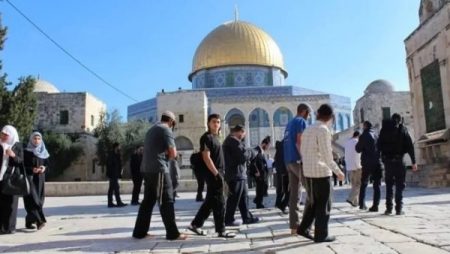 اقتحم مستوطنون اليوم (الأربعاء) المسجد الأقصى المبارك بحماية مشددة من قوات الاحتلال الإسرائيلي.وأفادت محافظة القدس، بأن عشرات المستوطنين اقتحموا باحات المسجد، وأداو طقوسا تلمودية استفزازية كـ”السجود الملحمي”، قرب باب الرحمة وقبة الصخرة.وأضافت، أن مجموعات تابعة لما…