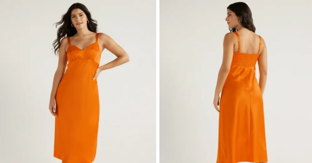 يأتي الفستان بثلاثة ألوان مختلفة، لكن فستان Orange Pepper هو المظهر الربيعي الذي نعتقد أنك سترغبين في ارتدائه حقًا. إنه نسيج محكم يشبه الجلد مع رقبة على شكل حرف V عميقة. بالإضافة إلى ذلك، فهي تحتوي على أحزمة قابلة للتعديل لذا لن تضطر إلى سحبها للأعلى طوال الليل – وهي مشكلة شائعة مع أحزمة حمالة الصدر، كما تعلمين جيدًا بالفعل.