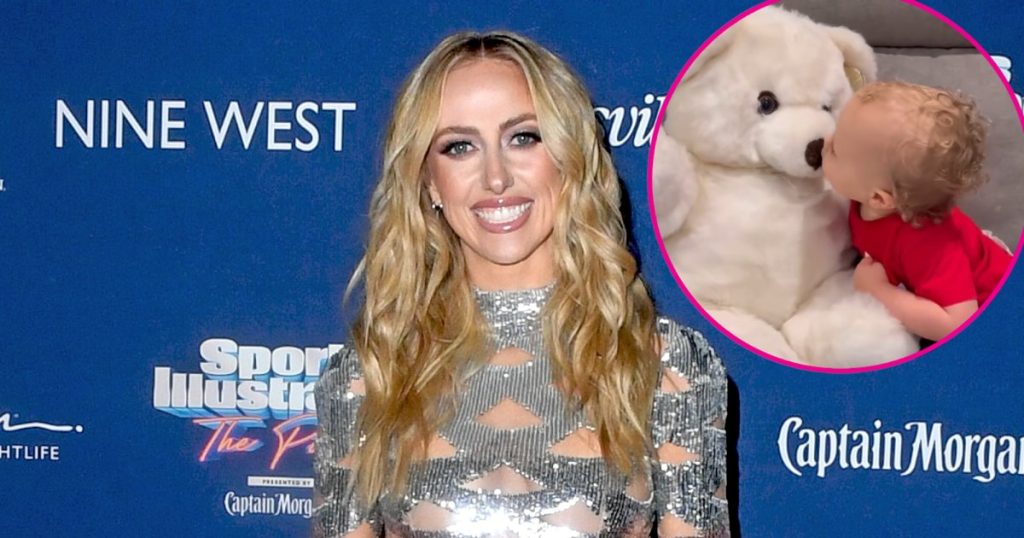 في المقطع بريتاني وزوجها باتريك ماهومزويمكن رؤية الطفل الرضيع جالسًا على كرسي يرتدي ملابس مريحة بجوار دمية دب كبيرة الحجم ذات اللون الكريمي. ثم حثت بريتاني ابنها بكلمة “القبلات”، مما أدى إلى انحناء برونزي وهبوطه معانقة لطيفة على أنف صديقه ذي الفراء.