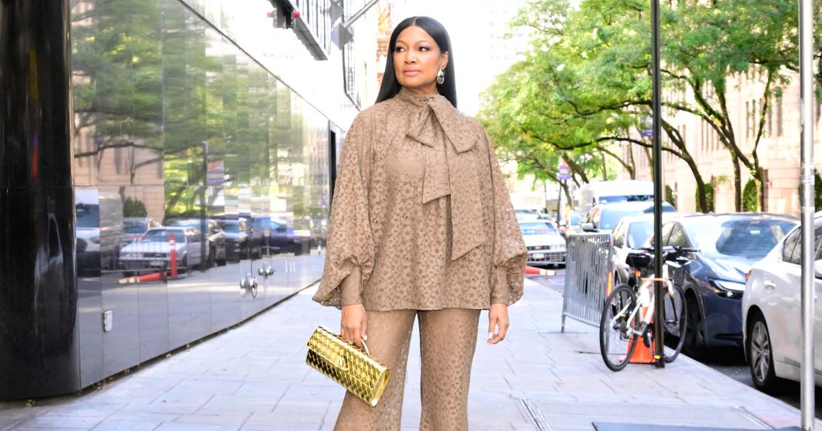 جارسيل بوفيه لقد جعل الذهب للتو موضة الخريف الجديدة محايدة! ال ربات البيوت الحقيقيات في بيفرلي هيلز خرجت الشبة للتو في مدينة نيويورك في 22 أكتوبر وهي ترتدي زيًا أنيقًا أحادي اللون لفت الأنظار. لقد صممت بلوزة مقوسة باللون البيج مع بنطال واسع منسق وكعب عالٍ، لكن حقيبة يدها الذهبية المعدنية هي التي سرقت الأضواء حقًا.
