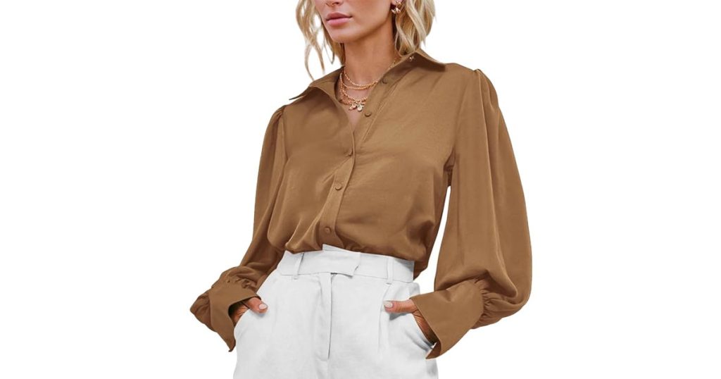 رؤيته: احصل على ال قميص BTFBM نسائي من الساتان بأزرار سفلية مقابل 23 دولارًا (كان 30 دولارًا) في أمازون! يرجى ملاحظة أن الأسعار دقيقة اعتبارًا من 31 مارس 2024، ولكنها قد تكون عرضة للتغيير.