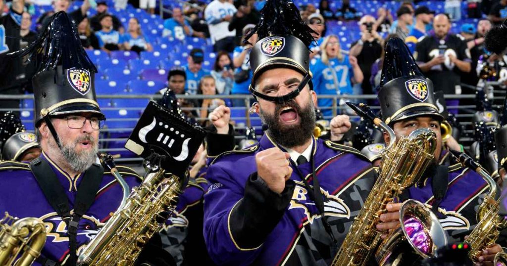 بينما تدحرجت الكاميرات خلال الاثنين ، 22 سبتمبر البث قبل المباراة، رافق جيسون ، 37 عامًا ، فرقة مسيرة Ravens على عرض jaunty من ليلة الاثنين كرة القدم أغنية. كان يرتدي زيًا أرجوانيًا وقبعة سوداء ، مع حزام الذقن يرعى أنفه. عندما انتهت الأغنية ، هتف وأعضاء الفرقة عالية العطاء.