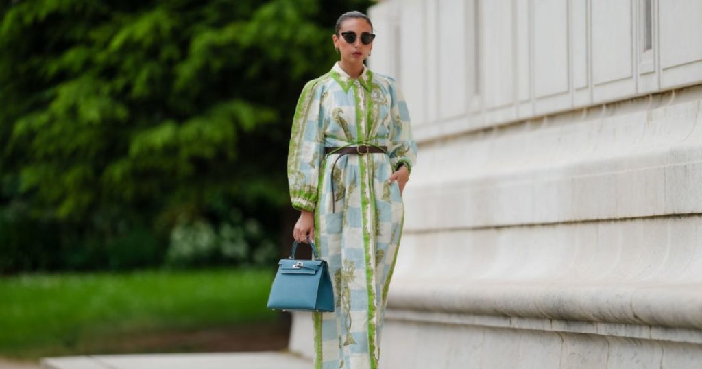 3. الفعل الأنيق: لا تنظر إلى فستان الشيفون الذي يعطي الطاقة التنفيذي. هذا MIDI المطبوع هو متدرج مع التصميم الاغراء والفضفاضة.